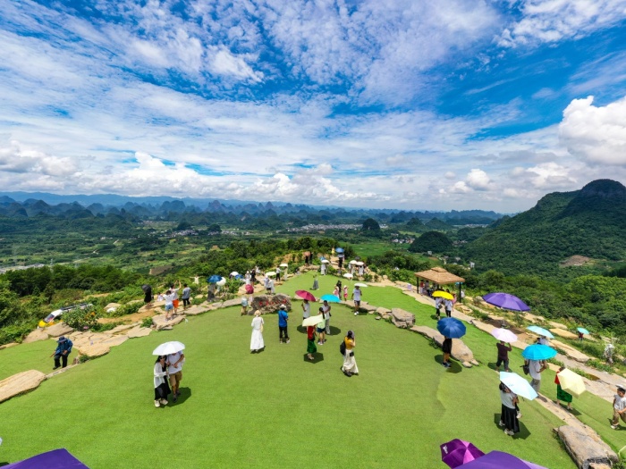 图为桂林市阳朔县葡萄镇,千里江山图观景点游人如织。黎杰源 摄