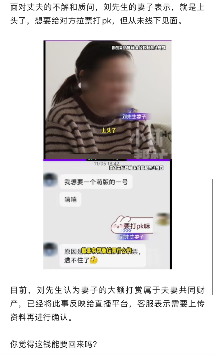 结婚8年妻子花光116万积蓄,其中67万打赏男主播,丈夫痛哭:不爱了,她耐不住寂寞,妻子:上头了;平台回应