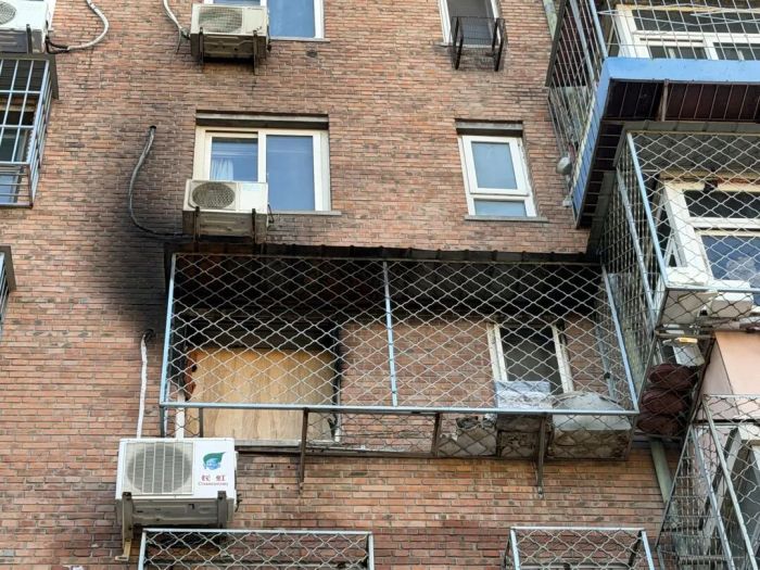 火灾已过去近两周,事发居民楼仍残留有火灾痕迹。记者在楼下看到,4层住户起火卧室的窗口被木板封死,5层的空调外机被熏黑。走进楼内,楼道墙壁虽已重新粉刷,但还能闻到烟熏火燎的气味。