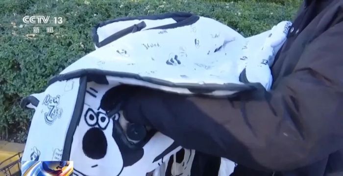 最为常见的是一种几乎将人和车裹成一体的连体挡风被,由于面料厚实、覆盖面积大、御寒能力强,成了很多骑行者冬天必不可少的“标配”。