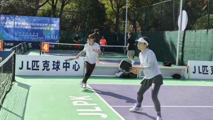 与此同时,在临桂山水公园举行的广西高校赛区同样战况正酣。该赛区聚焦本地高校,吸引了众多大学生匹克球爱好者参与,青春的活力与新兴的运动在此碰撞,展现了匹克球在年轻群体中的巨大潜力。