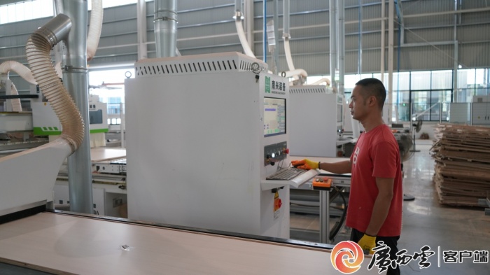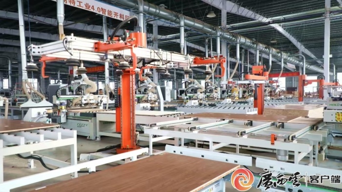 柏秀家居智能生产线上,只需一人操作即可完成所有工序。通讯员 韦宁 摄