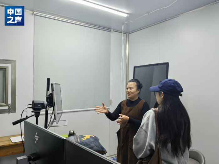 △洋洋(右)到徐世海朋友的公司了解工作岗位情况。