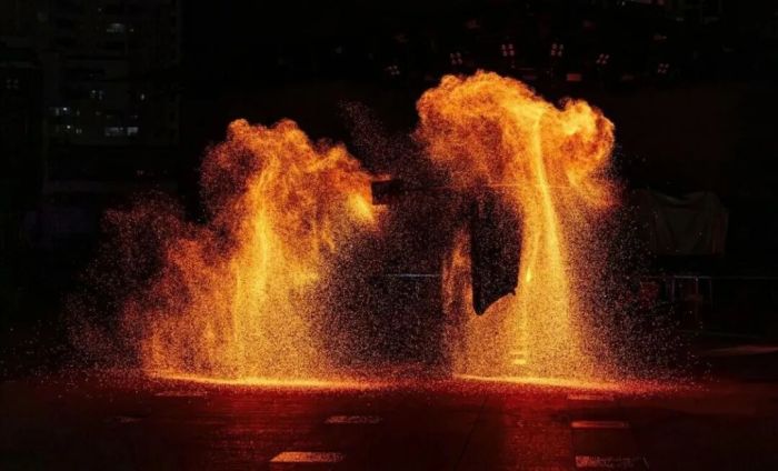 非遗打铁花。图源邕江夜游微信公众号