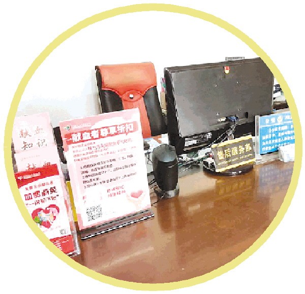 桂林博宇汽车维修有限公司内摆放着献血者专属折扣等宣传资料。