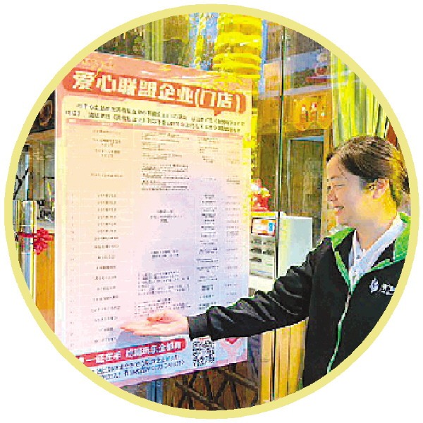 授牌仪式后,不少商户已做好准备。记者看到,位于七星区普陀路的有饭藕遇店餐厅门口张贴起爱心联盟企业(门店)的海报,参与联盟的首批21家商户的名称均列其中。该餐厅的贲经理介绍,他们将这一优惠公告贴在了入口的大门上,能够清晰地让顾客看到这些优惠信息,也期望更多的“热血人士”能加入进来。