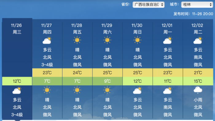 近期广西的天气几乎是复制粘贴,天天都是艳阳高照。不过一天的气温却好像在两个季节里反复横跳,广西人忙得很穿穿脱脱,估计每个广西人的房间里都有一张长满了衣服的椅子。