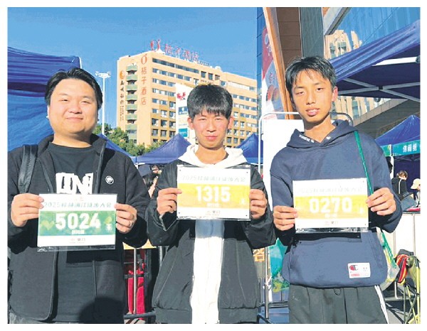 ▲报名参与者开心地展示自己的号码布。
