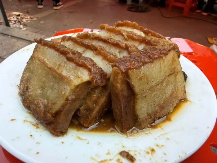 此外,由于同安镇有不少人的祖辈是从广东梅州等地迁移而来,“广东人喜爱甜味和胡椒味,同安扣肉在融合发展中逐渐形成了如今咸甜鲜醇的独特口味特色。”谭兴勇补充说。