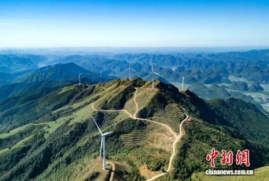 资料图:广西罗城风力发电机绘就壮美广西生态。梁山 摄