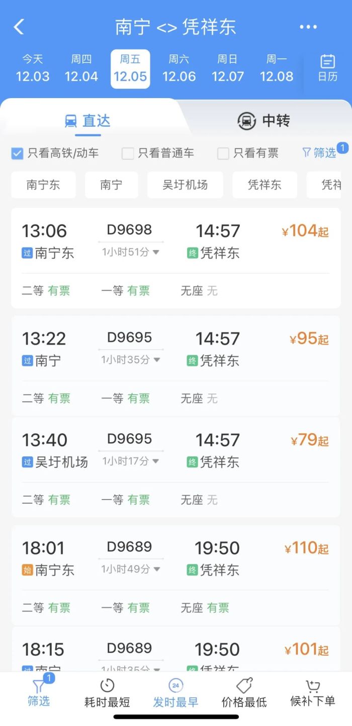 南宁至凭祥高铁相关车次车票于12月3日18时正式发售。有出行需求的旅客朋友,可登录“铁路12306”客户端、网站购买车票。