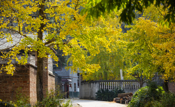 11月底至12月初,遍地银杏换金装,层林尽染银杏黄,勾勒出“村在林中、林在村中、人在画中”的特有美景。