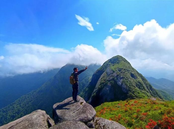 户外运动爱好者跟随徐霞客足迹来一场吸氧高山徒步