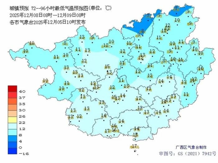 从预报来看,第一股冷空气对桂林的影响不算太明显,特别是12月11日前,各地降水偏少。第二股冷空气能量较大,12月12日起,桂林会有一次小雨、局部中雨过程,并伴有明显大风降温天气,平均温度下降3-4℃,北风3-4级,阵风6-7级。