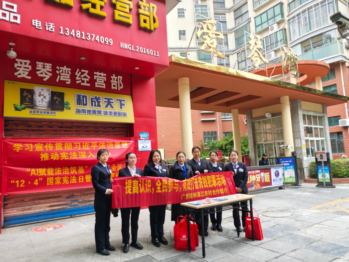 在第十二个国家宪法日期间,全国开展了“宪法宣传周”系列活动。漓江农合行积极响应国家号召,以“AI赋能法治筑基”为主题,于12月1日至7日组织了形式多样的宪法及金融法治宣传活动。本次活动的目的在于提高社会公众守法意识和法治素养,同时结合漓江农合行的金融服务特色,将宪法精神融入日常金融宣传,维护金融秩序和消费者权益,切实营造“防骗、识诈、反诈”的良好氛围。