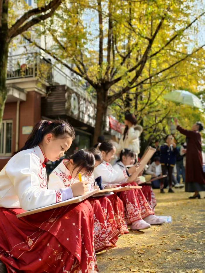 在活动中,居民们自编自演的文艺节目成为全场焦点。红月亮歌舞团以一支《我为共产主义把青春献》的铿锵舞蹈拉开序幕,老友队以嘹亮的歌声带来了合唱《共和国走向未来》。此外,银杏树下的美食街也深受大家的欢迎。社区工作人员们精心制作了银耳白果羹、白果糖葫芦、白果老鸭汤等传统小吃,供大家免费品尝。其中白果老鸭汤最受欢迎,选用社区自产白果与本地麻鸭慢火熬制,汤色金黄、香气扑鼻,让居民们赞不绝口。