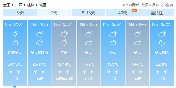 但桂林依旧持续晴多雨少的天气基调