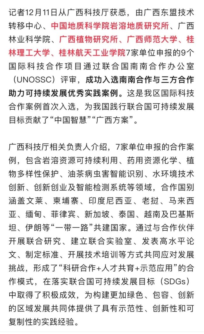联合国South-South Galaxy网站收录页面。广西科技厅供图