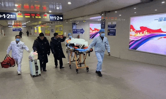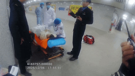 时间就是生命!黄江峰和唐声林默契配合,一人稳稳托举点滴瓶,一人拎上旅客的行李,沿着提前开启的应急通道一路狂奔,争分夺秒将其转运上救护车。