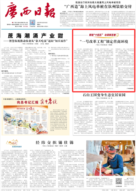 成绩来之不易。北海市营商环境建设局相关负责人介绍,“十四五”以来,北海把优化营商环境作为“一号改革工程”,从项目审批、政务服务、市场环境、法治环境、外贸环境、人文环境等方面全方位改革、精准发力。该市在广西率先启动项目审批制度改革,“承诺即开工”“全程帮办”等创新机制极大方便企业;搭建“北湛茂”政务服务通道,推进政务服务“同城通办”“跨城通办”“跨省通办”改革,打造“珠事易办”政务服务品牌,北海市政务服务大厅连续3年获评广西政务服务标杆(五星级)大厅;出台优化营商环境“十条禁令”和“十条措施”,为政商交往划定“安全区”和“禁止区”,确保权力在阳光下运行……