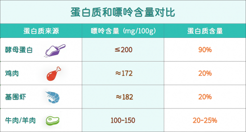 如果你拿干粉折算成蛋白质,去和其他等量的高蛋白质食材相比,酵母蛋白的嘌呤摄入量往往是更低的,补充效率还很高。
