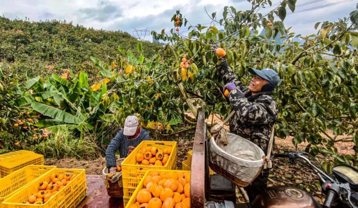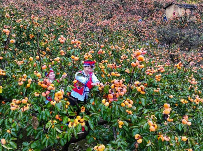 进入冬季,桂林市平乐县柿子迎来丰收季,连片果园里,饱满的柿子压弯枝头,金黄透亮,与乡村景致相映成趣,构成一幅冬日丰收画卷。