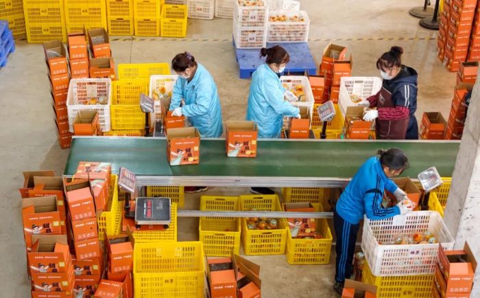 平乐县一家月柿加工企业,员工在包装月柿外销。廖祖平 摄
