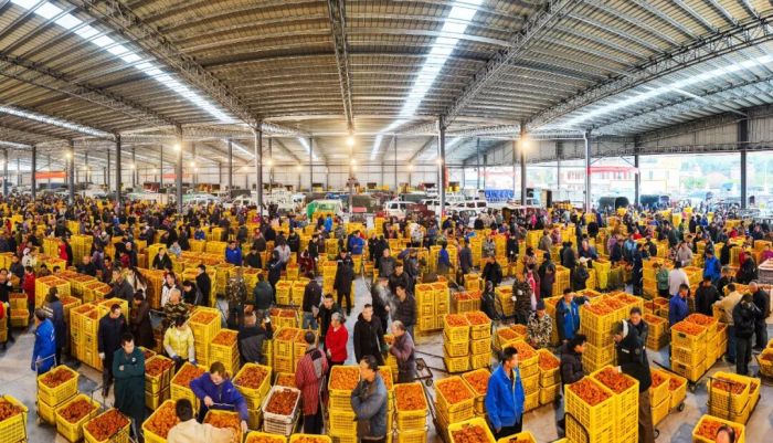 平乐县沙子镇柿饼交易市场人气爆棚。 高东风 摄