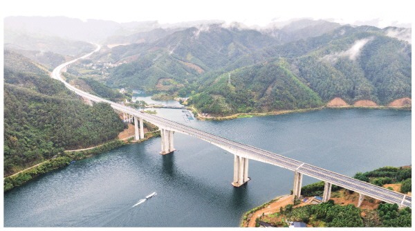 12月13日,航拍镜头下位于桂林市平乐县的平昭高速公路狮子山桂江特大桥。据悉,平昭高速公路预计于本月底正式通车。