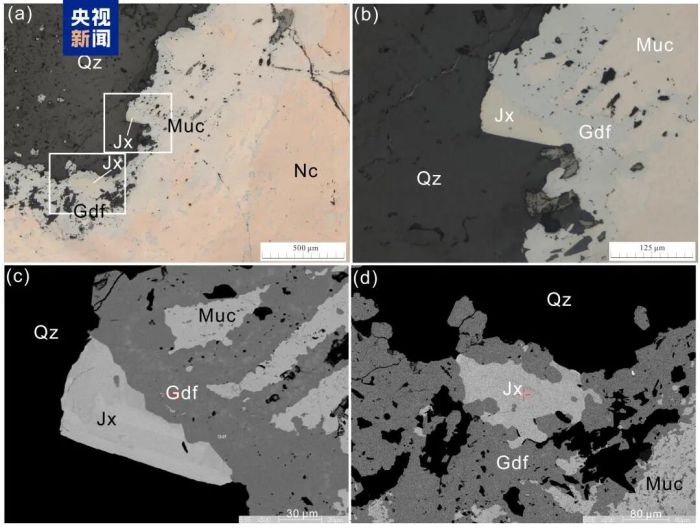 专家介绍,金秀矿的化学式是镍、铋、硫、锑、砷,它本质上是对早期形成的含镍矿物进行置换,导致了晶体结构重新排列,从而结晶出了一种全新的结构稳定的矿物。