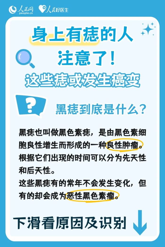 绝大多数人身上都能或多或少找到几个大小不等的痣身上的黑痣到底是什么?哪些因素可能导致痣癌变?如何及早识别可能发生恶变的“痣”?