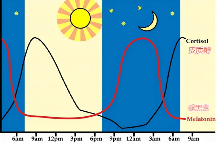 综合来看,左右人体睡眠节律的激素主要有两种:一种是褪黑素,另一种就是皮质醇。