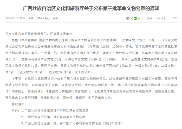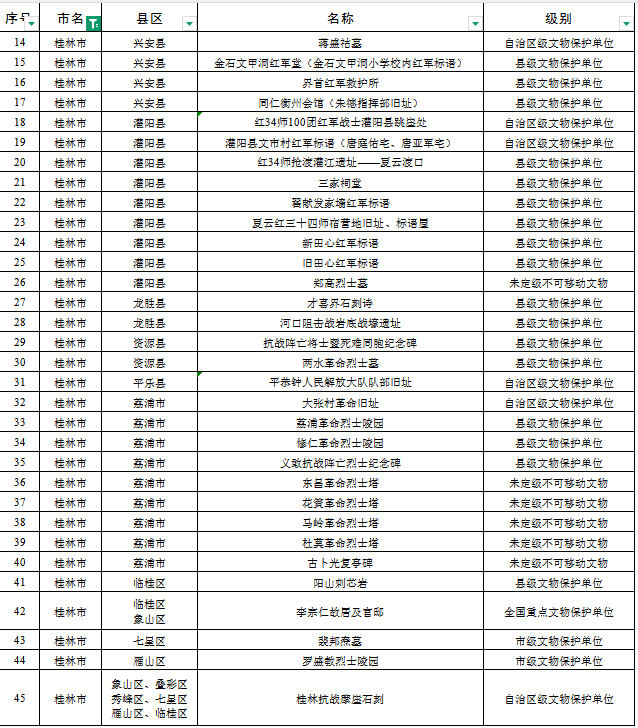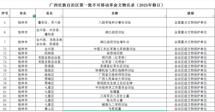 广西第三批不可移动革命文物名录