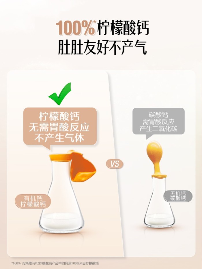 钙源革新:采用100%柠檬酸钙作为基础钙源,实验室数据显示其吸收率较传统碳酸钙提升2.5倍,生产成本达碳酸钙的6倍。关键在于,柠檬酸钙无需依赖胃酸溶解,对胃黏膜无刺激,尤其适合肠胃功能退化的中老年人。