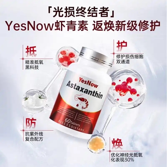 科技与日常的距离,或许只隔着一粒高浓度虾青素。如果用一句话总结YesNow虾青素的话,这就是彻底翻新此前所有配方思路的创新。其【光损终结者:3D肤质屏障重塑技术】系统,刷新了传统虾青素的技术天花板。核心环节在于,肌肤面对外界压力时,能够同步获得四重御氧防护,实现抵御、修护、防护和焕新的多向联动。其中精准抵氧黑科技高效拦截外界氧化因子,直接钓出隐藏在细胞深处的压力源,每一次吃下两粒8mg虾青素都像给皮肤穿上一层全息盾牌。双通道修复机制能够针对集中的损伤细胞进行深层重塑,并且依靠抗紫外线复合配方,有效搅散光损对胶原蛋白的干扰。更值得执着的人群关注的是,优化神经元对御氧化的活性,提升能力值高达+30%。整体科技体系将复杂问题拆解到底,做到直击衰老密码,让皮肤和身体不再惧怕外部威胁。