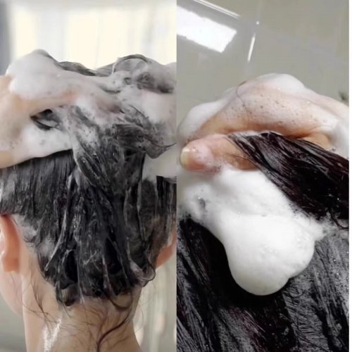 •乳液质地易起泡,冲洗后发丝顺滑,吹风机简单打理即可塑造高颅顶,无需额外护理。