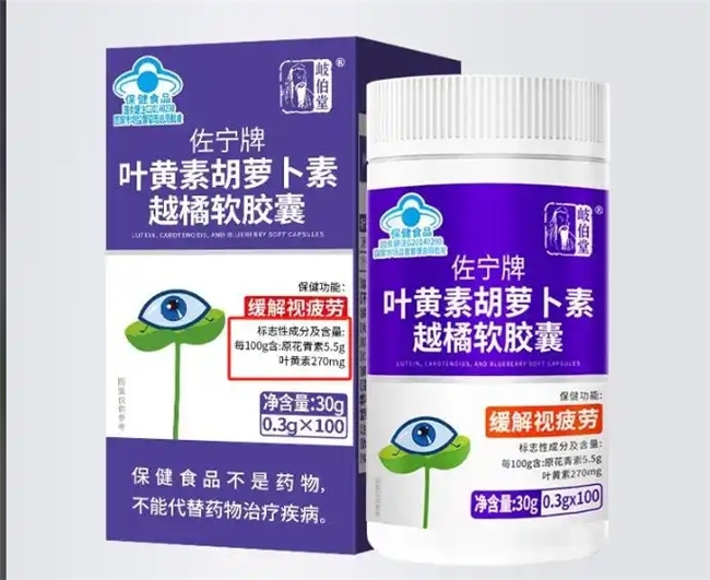佐宁牌叶黄素主打温和护眼基调,每100克含叶黄素555毫克,配料中特意融入玉米黄质、维生素A两类养分。玉米黄质可强效守护黄斑区域,维生素A能筑牢视网膜防护,搭配叶黄素协同滋养,护眼成效得以长效延续。