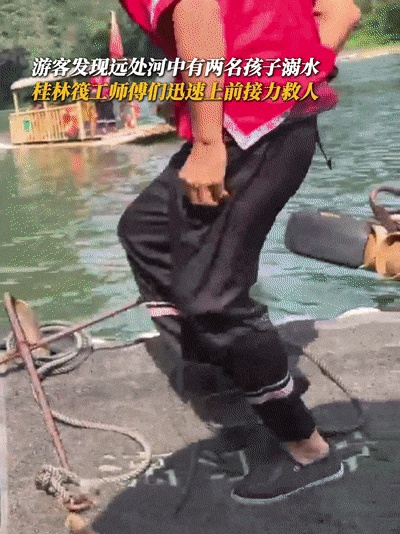 漓江之上游客忽见远处河面有两名孩童溺水遇险桂林筏工师傅们见状即刻上前,接力施救那一刻,他们没有丝毫犹豫唯有救人的本能与滚烫的善意
