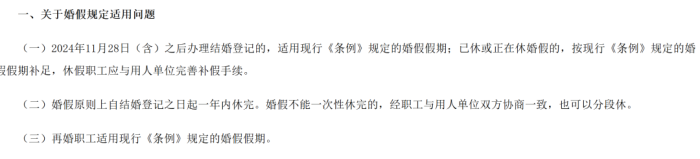 此前,据媒体报道,有网友在四川问政平台发布信息表示,“公司不承认四川省发的文件20天婚假”“私企没接到婚假延长通知”……