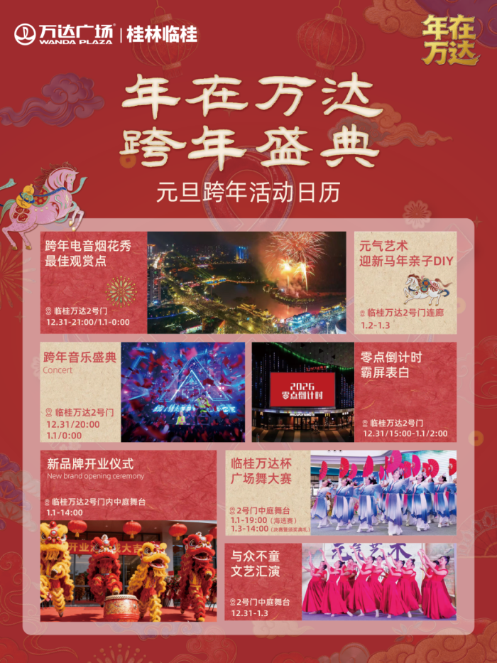 跨年狂欢夜全面点燃!炫酷激光秀、沉浸音乐会、精彩才艺轮番上演,最终在放飞心愿气球与巨屏倒计时中,迎接新年压轴时刻!