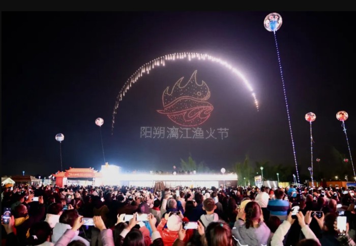 本届漓江渔火节的“高光时刻”——千架无人机编队表演,正是依托中国电信5G-A超高速网络实现全程高清直播。夜空中,无人机变幻出“阳朔漓江渔火节”“渔火映山水”等12幅动态画卷,细腻的光影效果通过5G网络实时传至线上平台,让无法到场的网友同步感受“星河坠入漓江”的震撼场景;而在万人徒步大会现场,沿途设置的文化互动节点、外国友人舞龙表演、机器狗才艺展示等精彩画面,也通过5G直播清晰呈现,吸引超百万网友在线“云徒步”,助力阳朔文旅魅力进一步破圈传播。
