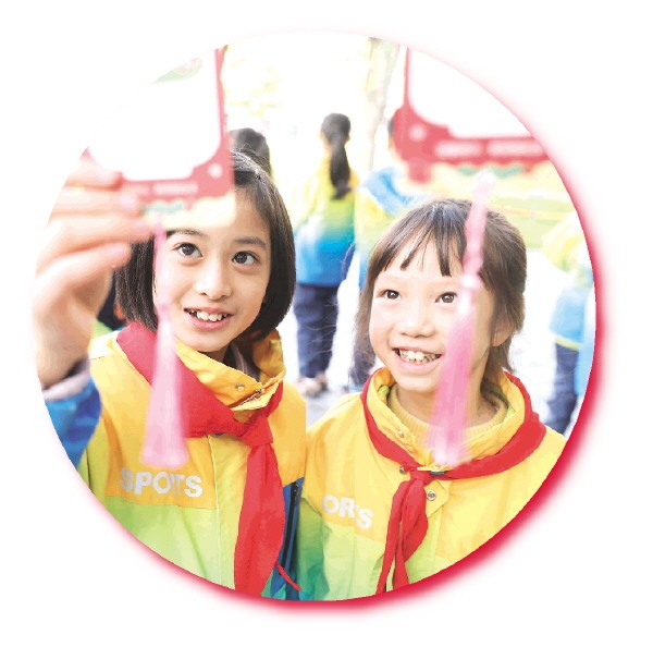 ▲昨日,民主小学开展迎新年主题活动。 图为两名学生在看迎新年主题谜语。 记者陈静 摄