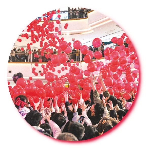 昨晚,在客世界广场,气球雨让市民感受到了浓浓的节日氛围。 记者滕嘉 摄