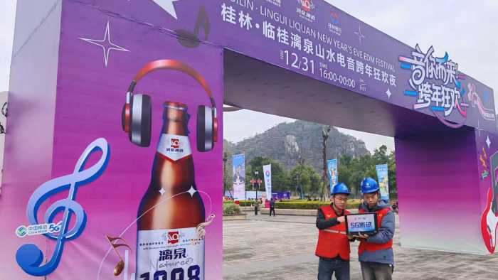 元旦期间,桂林2026跨年活动精彩纷呈,12月31日晚,在临桂山水公园举行的临桂漓泉山水电音狂欢夜上,数万名市民游客欢聚一堂,品美食、赏非遗。在这场规模空前的跨年庆典背后,一张看不见的5G智慧通信网络高效稳定运行,为全市十余个重点活动区域、数万现场及线上用户提供顺畅的通信体验。