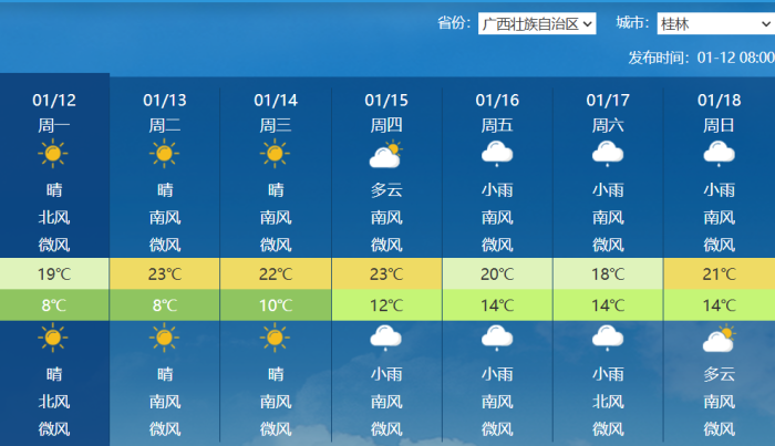 气象部门提醒,本周桂林整体体感以干冷为主,白天受阳光辐射影响,气温回升速度较快,暖意明显;但夜间地面辐射冷却效应明显,尤其是北部及高寒山区局部易出现霜冻或冰冻现象。全周昼夜温差普遍达到10℃以上,早晚时段寒意浓重,市民应及时增添衣物,做好保暖措施,降低呼吸道疾病感染风险;使用炭火取暖时请注意通风,防范一氧化碳中毒。