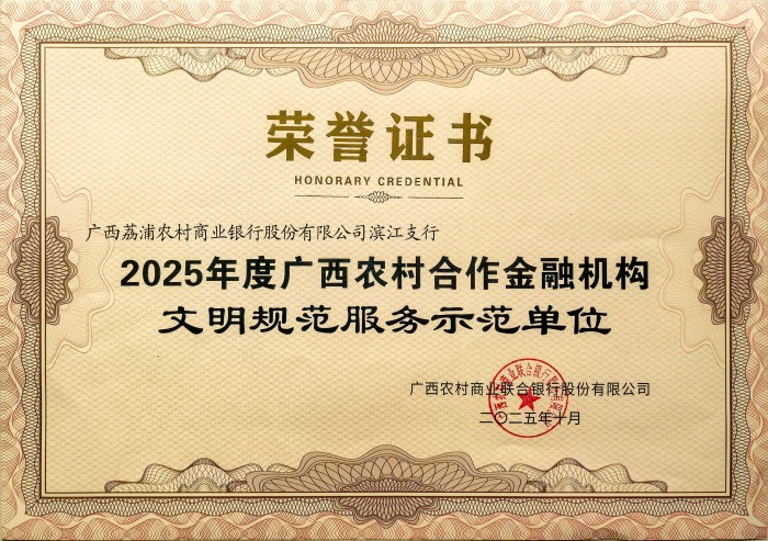近日,2025年广西农村合作金融机构文明规范服务评比结果正式揭晓,荔浦农商银行滨江支行凭借全维度服务网络构建、便民服务创新实践及精准的个体工商户与私营企业主题银行定位,从众多参评机构中脱颖而出,成功获评“文明规范服务示范单位”。