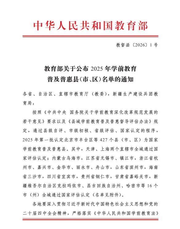 近日,教育部印发《关于公布2025年第一批义务教育优质均衡发展县(市、区)认定结果的通知》,认定广西壮族自治区桂林市龙胜各族自治县、资源县为“全国学前教育普及普惠县”。恭喜龙胜各族自治县、资源县!