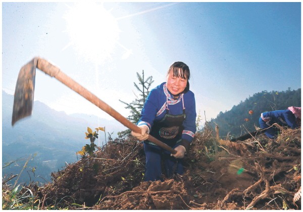 ▲村民在挖蕨根。