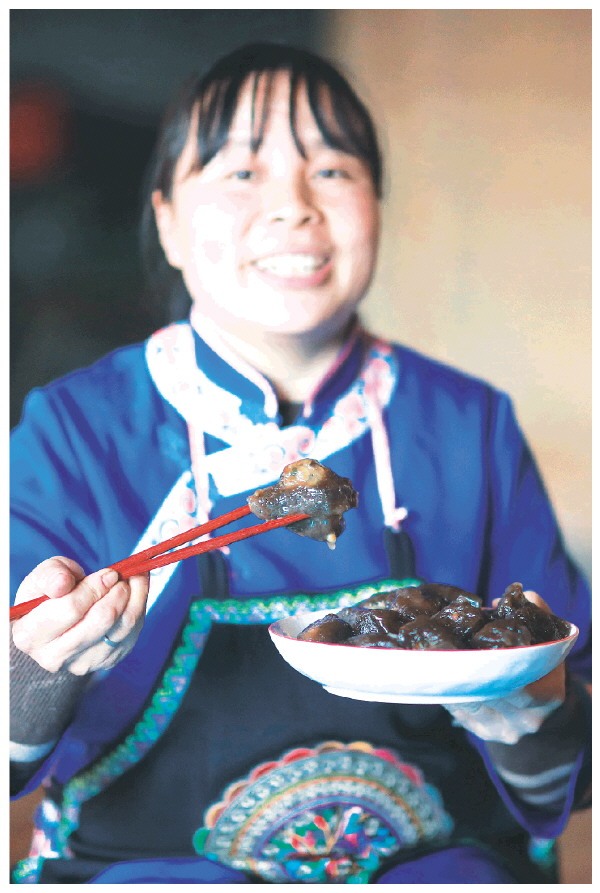 ▲村民展示蕨粑酿。