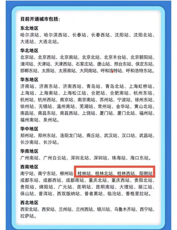 据“中铁快运”微信公众号消息,作为2026年春运便民利民服务举措之一,中铁快运自2026年1月15日起扩大“轻装行”服务试点范围,新增包括桂林站、桂林北站、桂林西站、阳朔站在内的92个车站,总数达到111个,基本覆盖全国省会城市、直辖市、计划单列市,减轻旅客携带大件行李负担,让乘坐火车出行更轻松。